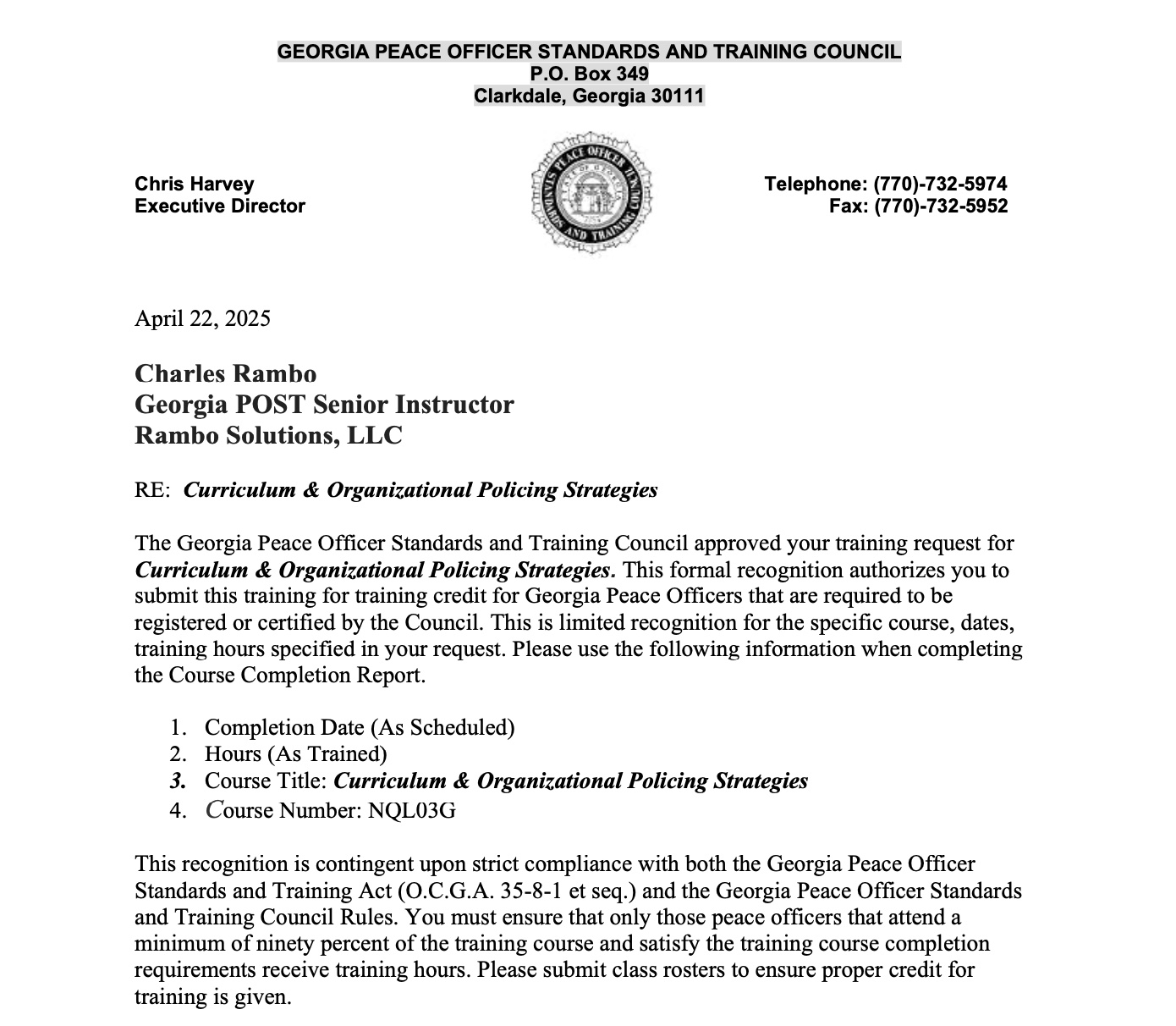 Unlike generic online providers, Criminal Justice Learning Online delivers Georgia POST–accredited instruction built on formal learning objectives. Our programs are designed for reciprocity across other state POST councils and aligned with continuing education requirement for corporate leadership development.