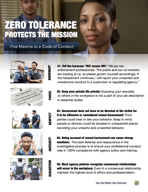 Integrity protects the mission. This handout delivers the code of conduct every professional must master to lead by example and safeguard the agency’s reputation. Advance to the Sexual Harassment Leadership Insight to internalize these maxims before they become case law.
